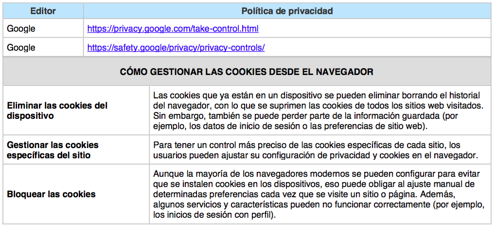 Los servicios de terceros son ajenos al control del editor. Los proveedores pueden modificar en todo momento sus condiciones de servicio, finalidad y utilización de las cookies, etc.